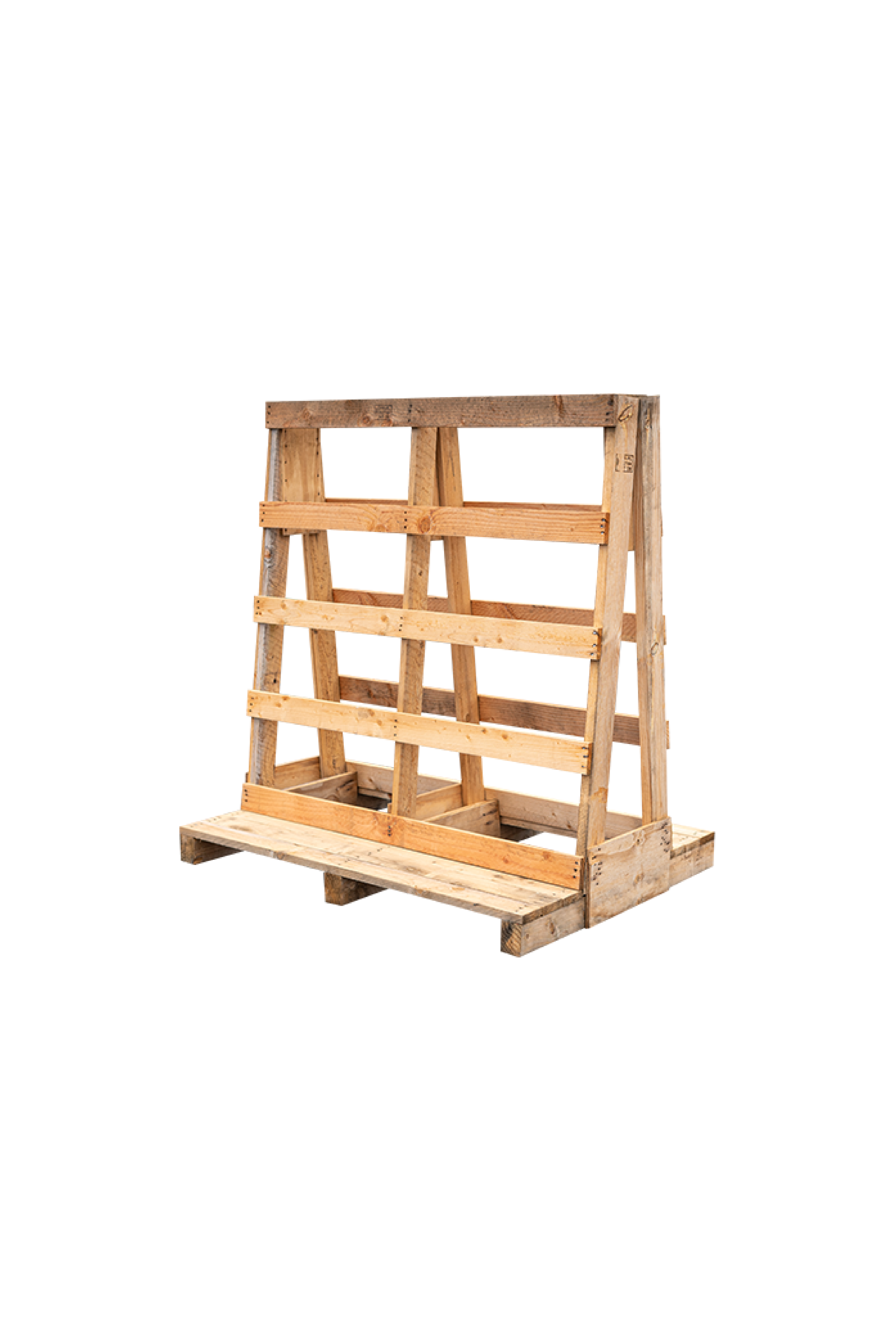 La palette chevalet est destinée au transport et au stockage de panneaux, vitrages ou matériaux plats. Sa forme en A permet de maintenir les produits en position inclinée, réduisant les risques de casse et facilitant la manutention. Elle est particulièrement utilisée dans les secteurs du verre, de la menuiserie et de l’agencement.